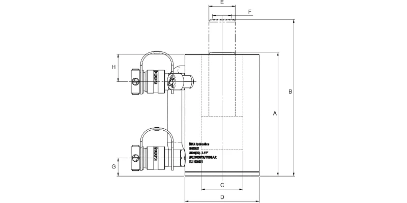 Nimike Rungon sisä-Ø C (mm) Männän Ø E (mm) Nostotyynyn Ø F (mm) Pohja – Liitin G (mm) Ylä – Liitin H (mm)
